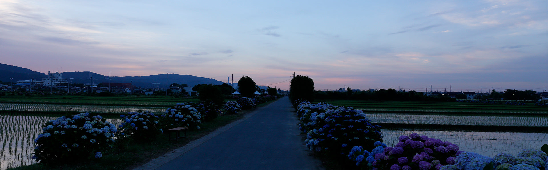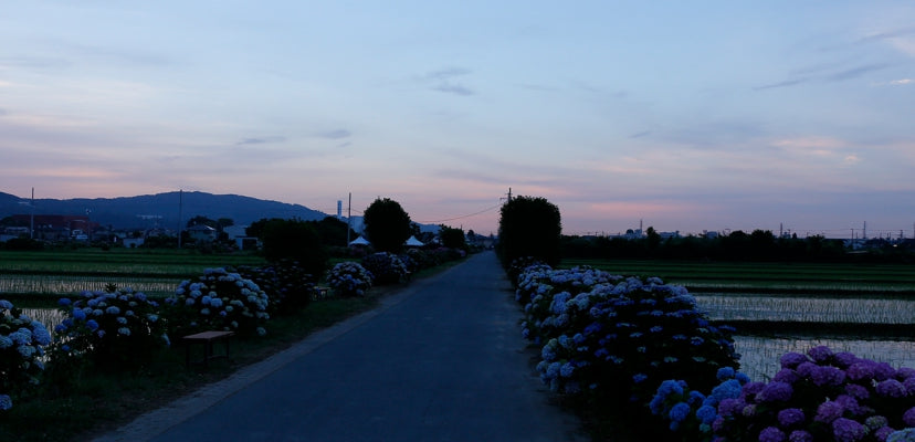 景色がひらけた田園風景に咲き並ぶあじさいの花は珍しく、たくさんの人で賑わいます。
